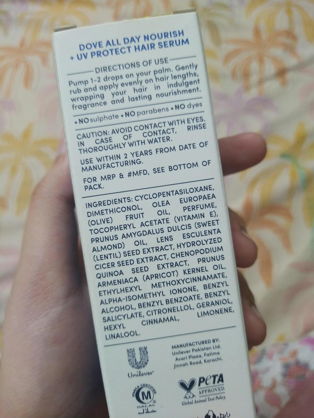 Introducing Dove all day nourish + UV protect hair serum - infused with Bio-protein care, nourishing oils and UV shield. Each drop of this potent formula delicately wraps your hair softly. Hair looks nourished, soft and smooth for upto 48 hours. The lightweight yet rich formula helps protects from UV damage. For the first time in Pakistan, Dove unveils BIO-Proteins....