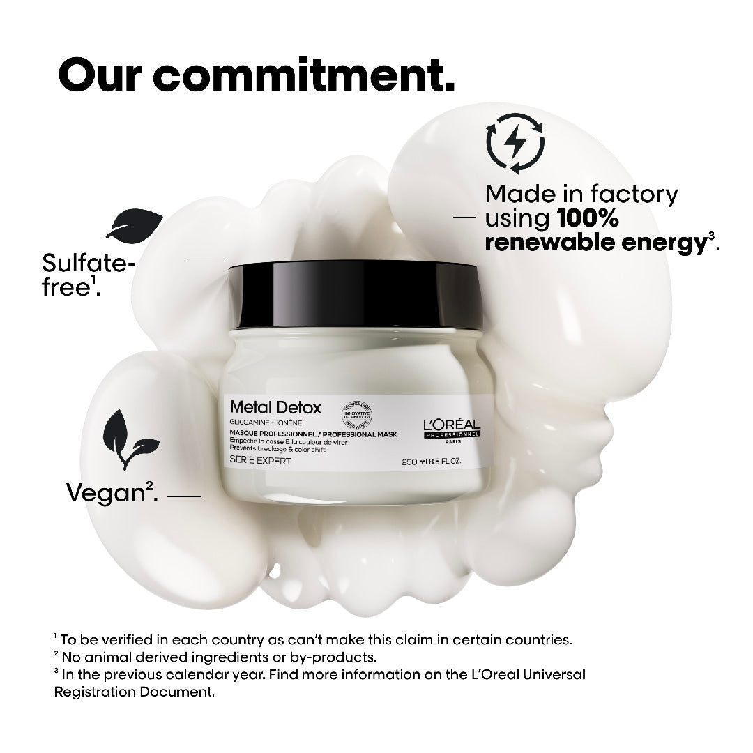 L'Oreal Professionnel Serie Expert Metal Detox Mask 250 ML - For Sensitized Hair Specifically formulated for color-treated hair, the L'Oreal Professionnel Serie Expert Metal Detox Mask 250 ML bottle is your ultimate solution for detoxifying your hair after any color, balayage, or lightening service. Experience remarkable results with this shampoo, including an impressive 87% reduction in hair breakage. It also...