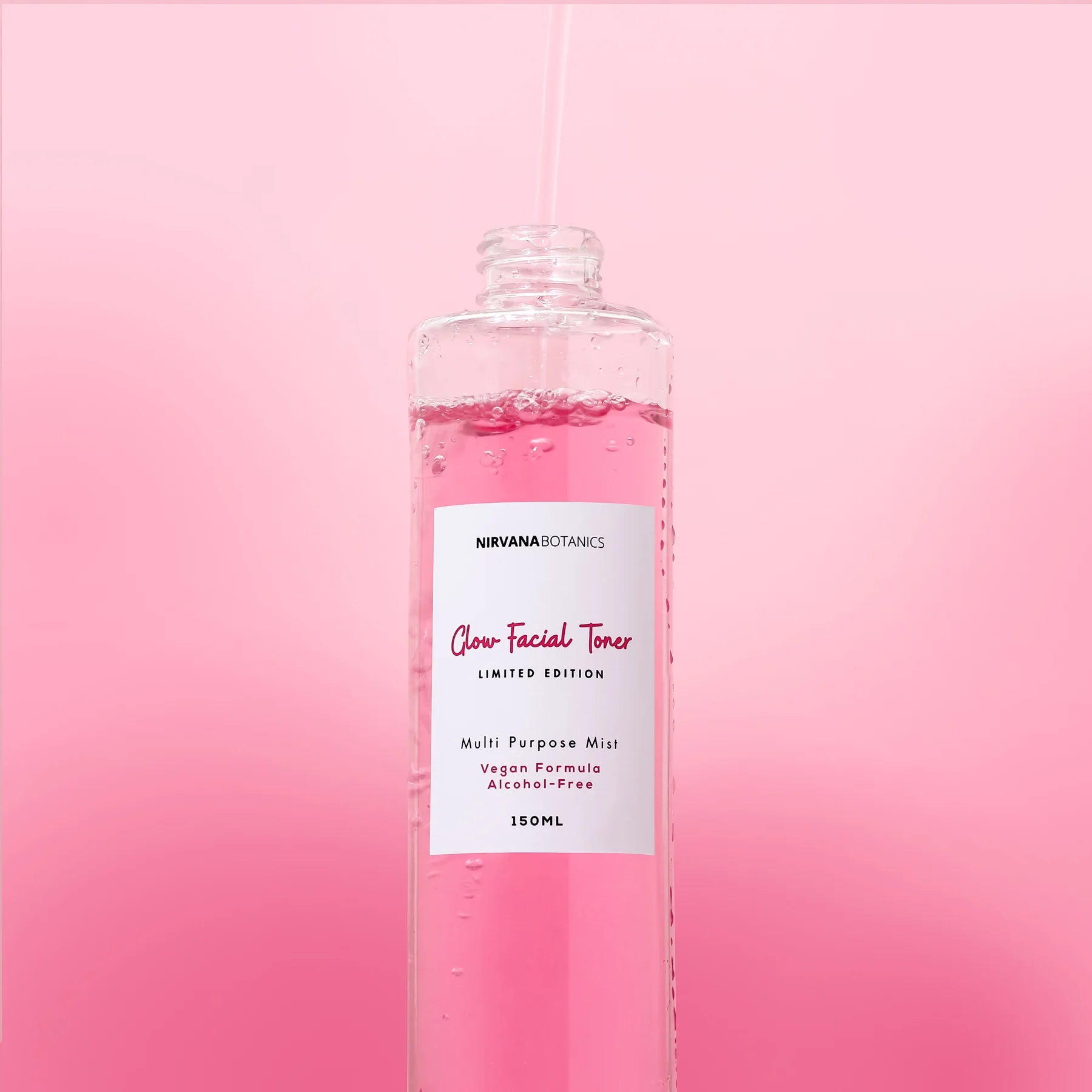 After cleansing the face, spray the pink glow toner evenly on the face, tap it into the skin, or let it absorb on its own. It can be used multiple times a day, before or after makeup, and as a facial mist throughout the day.